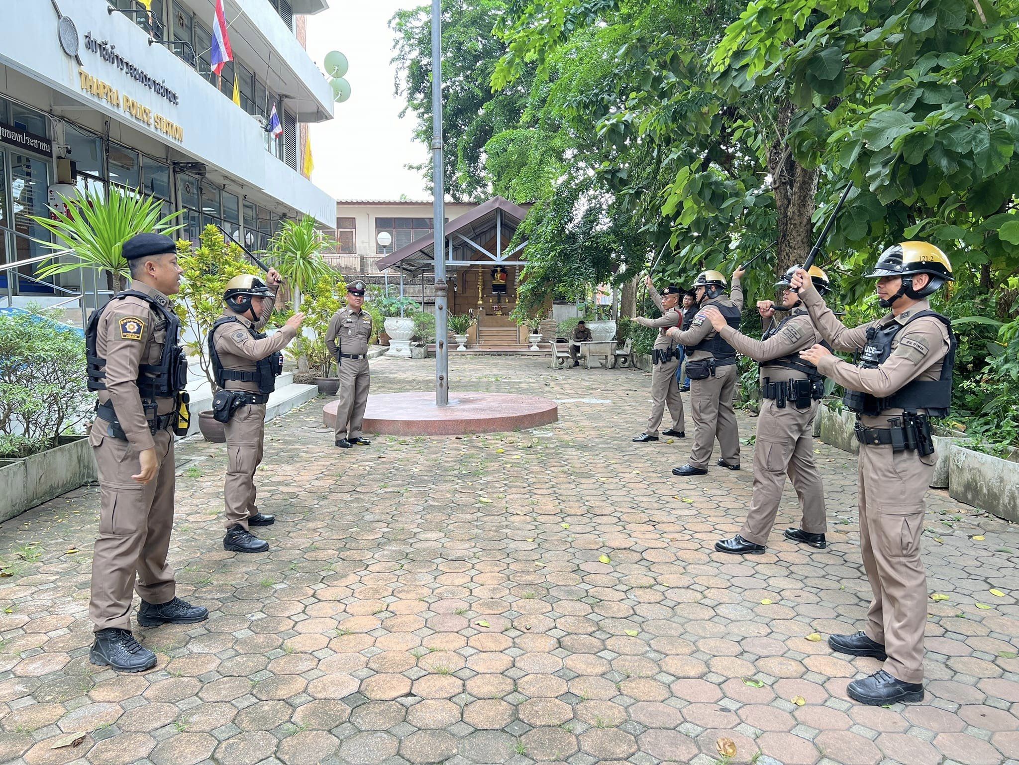 ร่วมฝึกทบทวนยุทธวิธีการปฏิบัติงานป้องกันปราบปรามการใช้อาวุธ ก่อนออกปฏิบัติหน้าที่