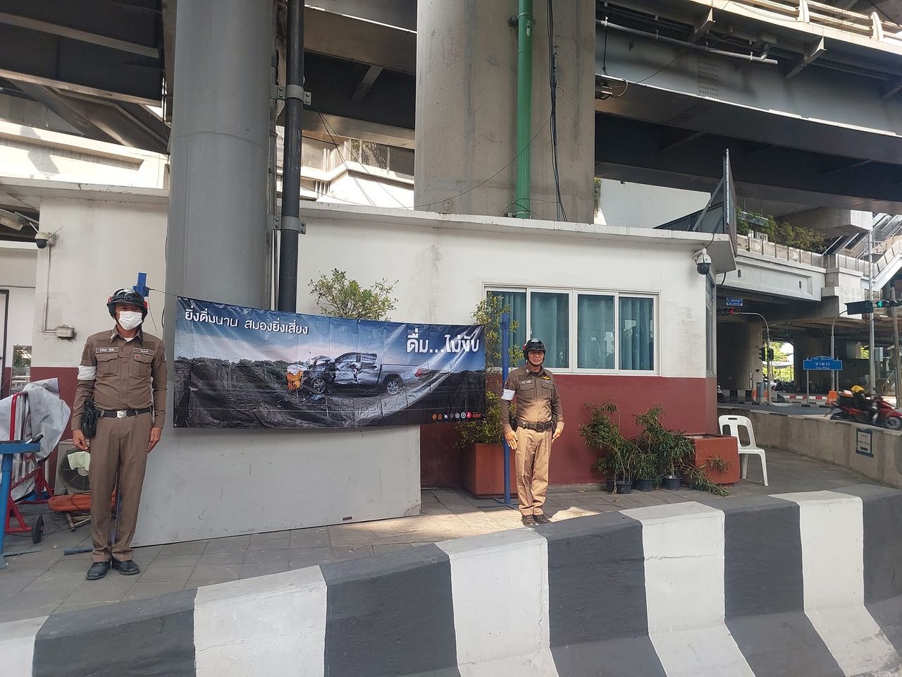 งานจราจร สน.ท่าพระ ติดป้ายรณรงค์ ประชาสัมพันธ์เฝ้าระวังอุบัติเหตุบนท้องถนน เพื่อประชาสัมพันธ์ ให้แก่ประชาชนทั่วไปทราบ ณ บริเวณแยกท่าพระ ตามนโยบายของสำนักงานเครือข่ายลดอุบัติเหตุ (สคอ.) ยิ่งดื่มนาน สมองยิ่งเสี่ยง ดื่ม...ไม่ขับกันนะครับ ด้วยความปรารถนาดีจากใจตำรวจ สน.ท่าพระ