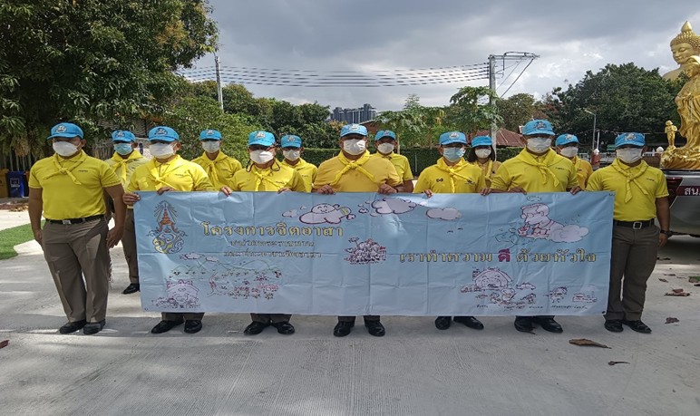 โดยร่วมกันทำความสะอาด ปรับภูมิทัศน์ บริเวณโดยรอบลานวัดประดู่ฉิมพลี ซ.เพชรเกษม 15 แขวงวัดท่าพระ เขตบางกอกใหญ่ กรุงเทพฯ